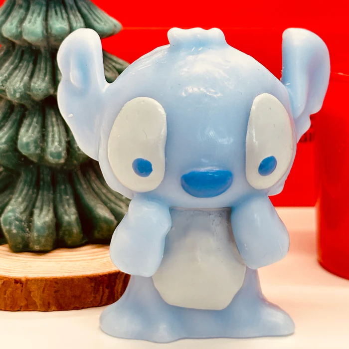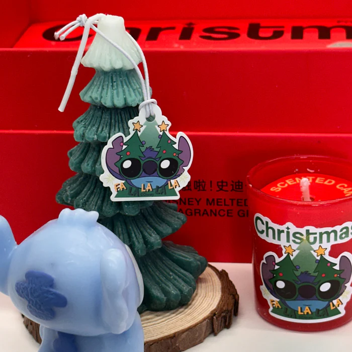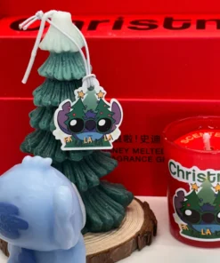 Inside the set are a scented candle, a pine tree, and an adorable Stitch