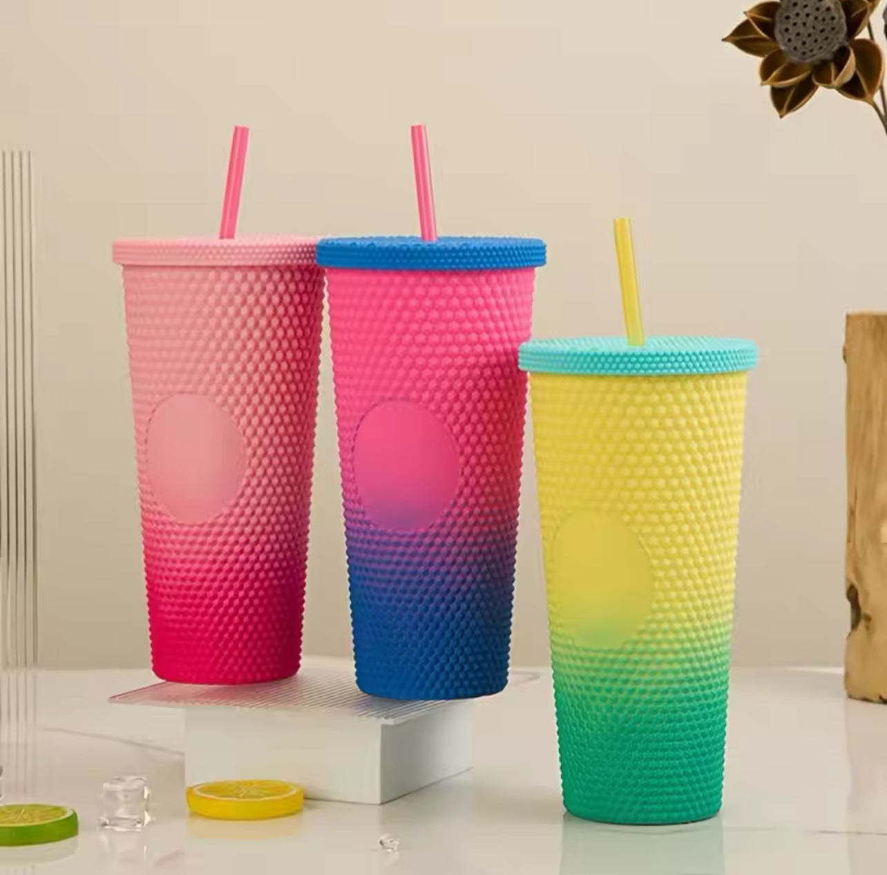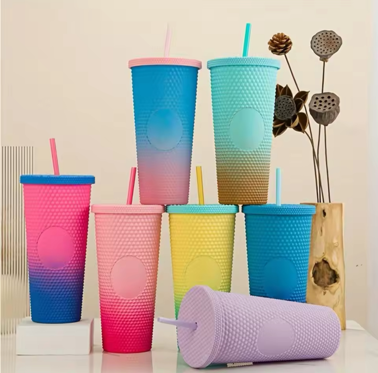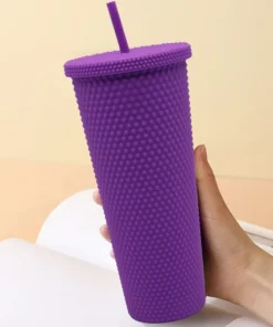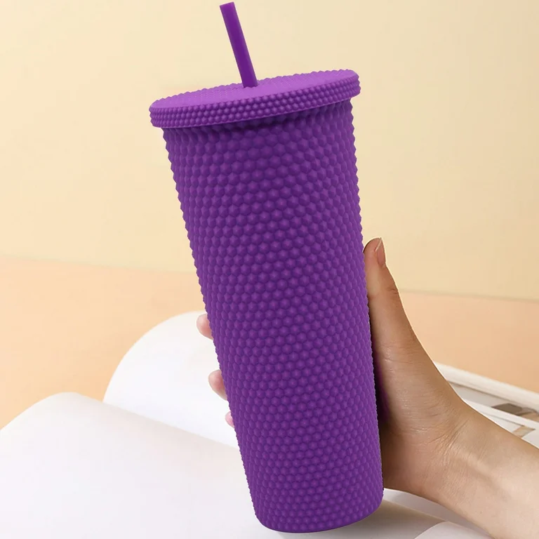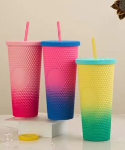 DOUBLE MATTE LAYER ELECTROPLATED COLORFUL CUP WITH STRAW