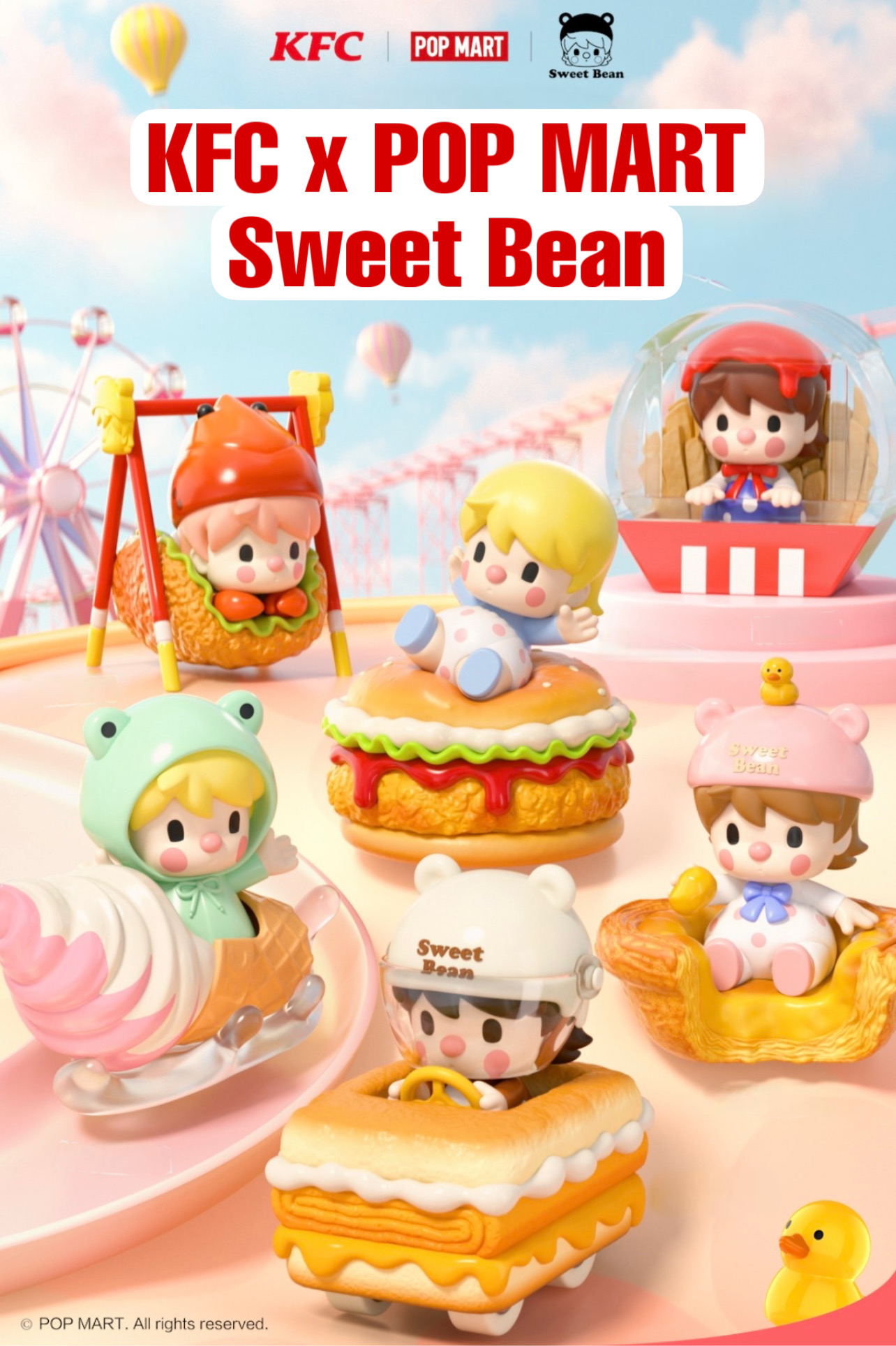 The collaboration includes six adorable SWEET BEAN figures featuring KFC’s symbolic cuisine, exclusive Limited Edition.