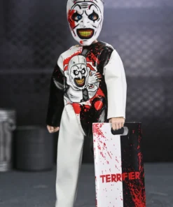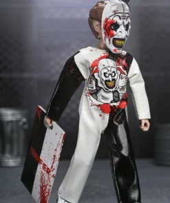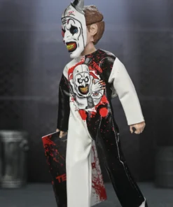 and Art the Clown (Terrifier). Wearing a mask and soft goods clothing replicating the vinyl look of classic costumes,