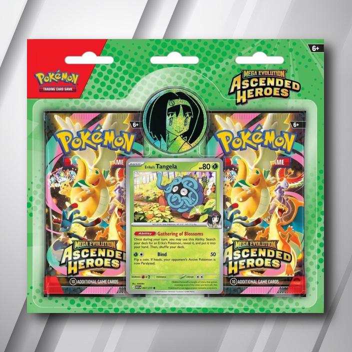 Each Pokemon Mega Evolution Ascended Heroes Erika 2 Pack Blister includes 2 booster packs and more!