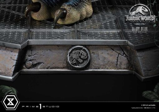Blue stands on a simulated metallic grate base, emblazoned with Jurassic World’s logo, so you will always remember where Baby Blue was created!